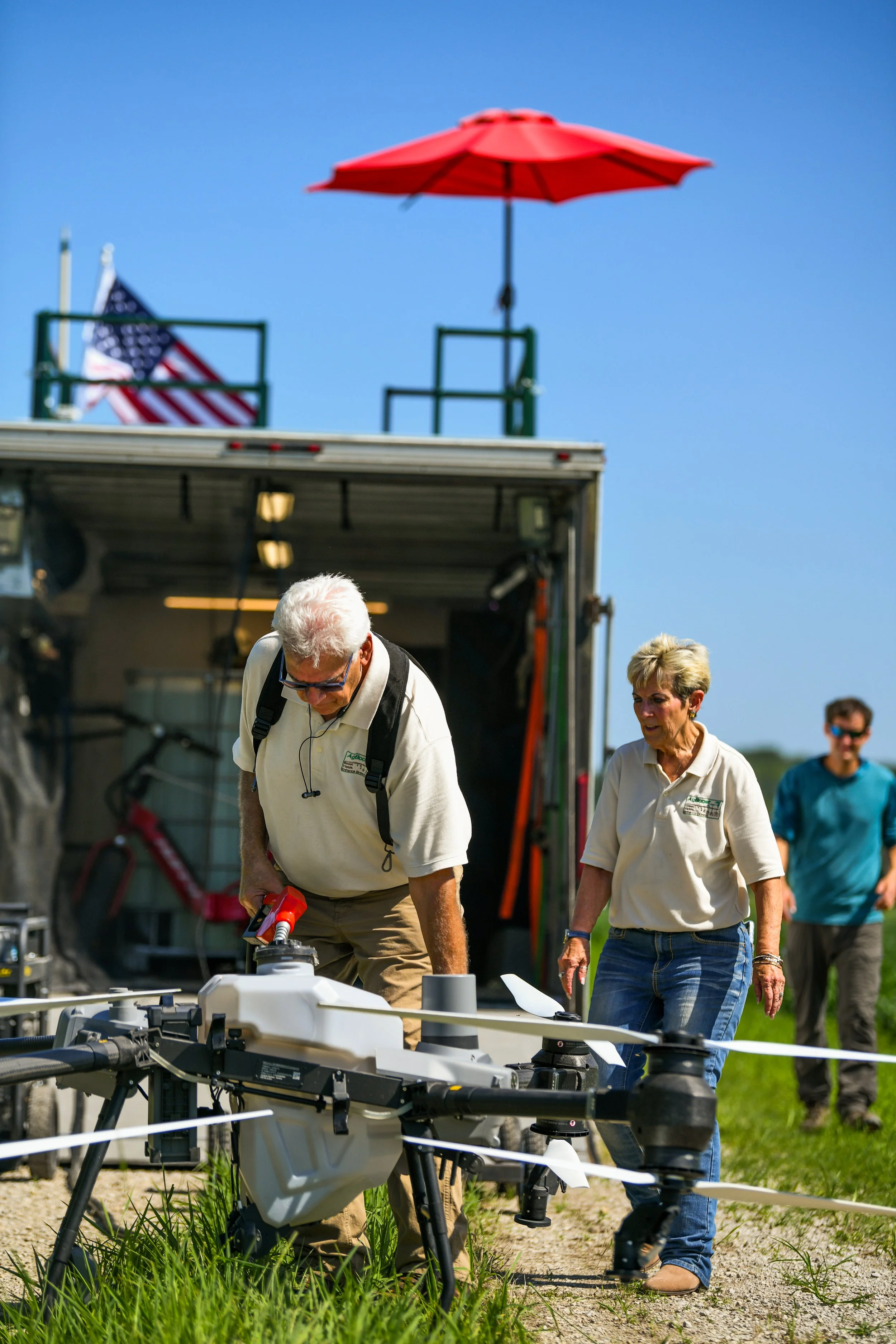Our DJI T50 spray drone gets the job done fast. No ruts. Not crop damage. No delays due to wet fields.